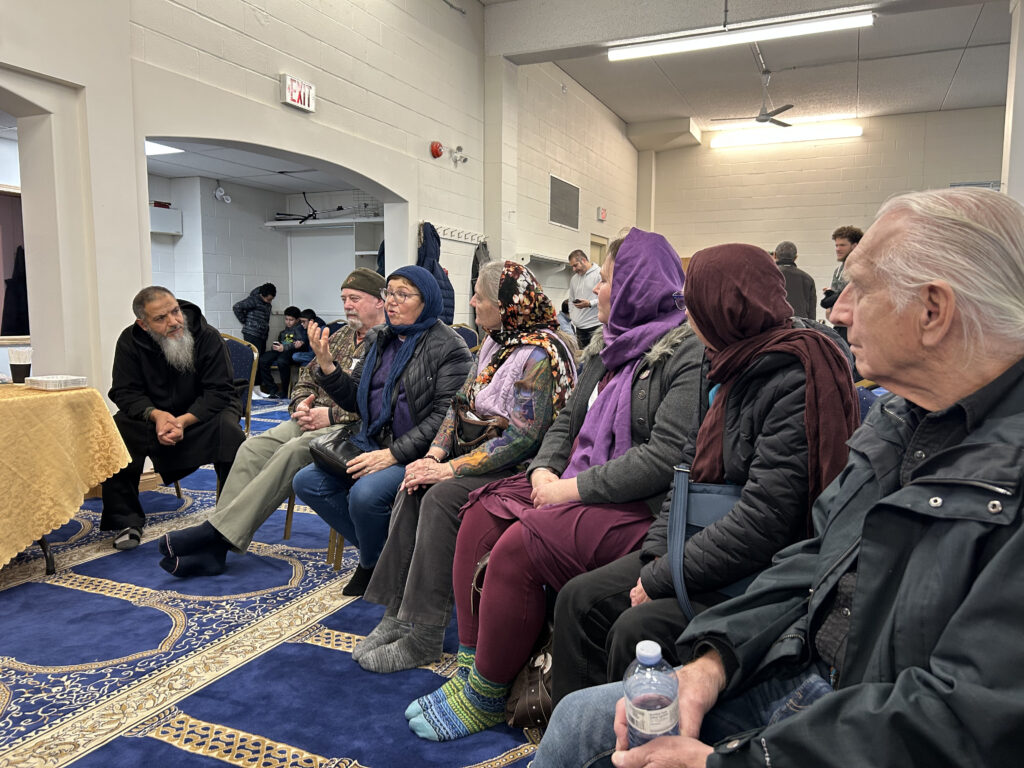 Our tour returned to the SW Masjid, where we were greeted by Imam Osama, who welcomed us into the busy Saturday afternoon flow of congregants. We were invited to ask questions of all kinds, which ranged from inquiries about the hijab to the process of arranged marriages. One of the imams chanted the Quran for us. We experienced another beautiful gift of timing as we were in the mosque during the call for prayer and afternoon prayers.