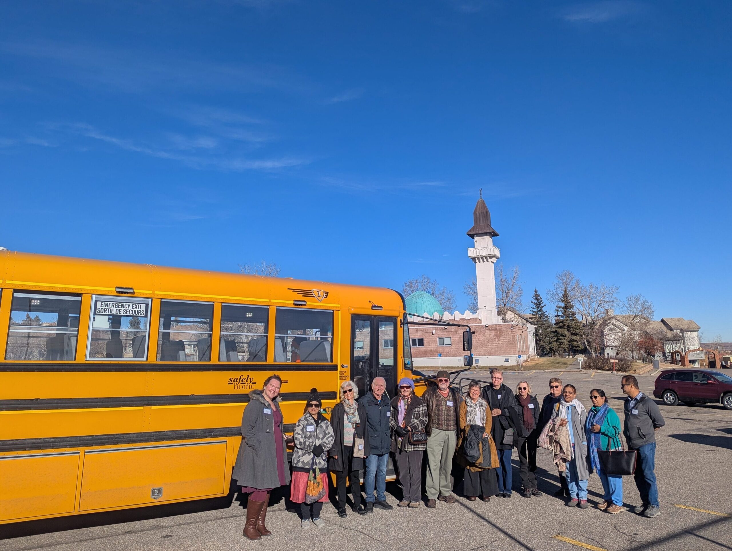 We began our 2026 Weekend of Welcome bus tour in the parking lot of the SW Masjid. The group was small; there was lots of room in the cheese wagon (yellow school bus). As we began, we discovered that our group included Hindus, Christians, Unitarians and people who would not identify with any faith. Our bus driver, Tony, was enthusiastic and a fan of Indian food. Our first stop was the Sikh Society Gurdwara, the first gurdwara built in Calgary 50 years ago on the outskirts of the city, in a farmer’s field. Now it is surrounded by houses, apartments, condos and roads.